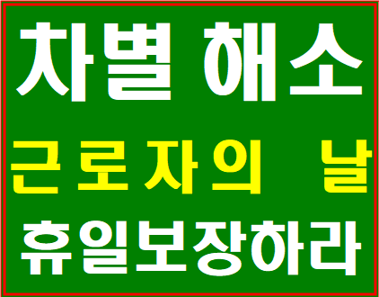 ‘제133회 근로자의 날’에 대한 논평 - 차별없는 세상을 위하여, ‘근로자의 날’을 법정 휴일로 지정해야 - ‘쉬는 노동자와 공공기관은 연가내고 아이들 돌봐야 하는 차별받는 노동자’ 제133주년 세계 노동절로써 우리나라는 '근로자의 날'로 ‘근로자의 날 제정에 관한 법률’이 정한 '유급 휴일'이고 부득이하게 출근할...